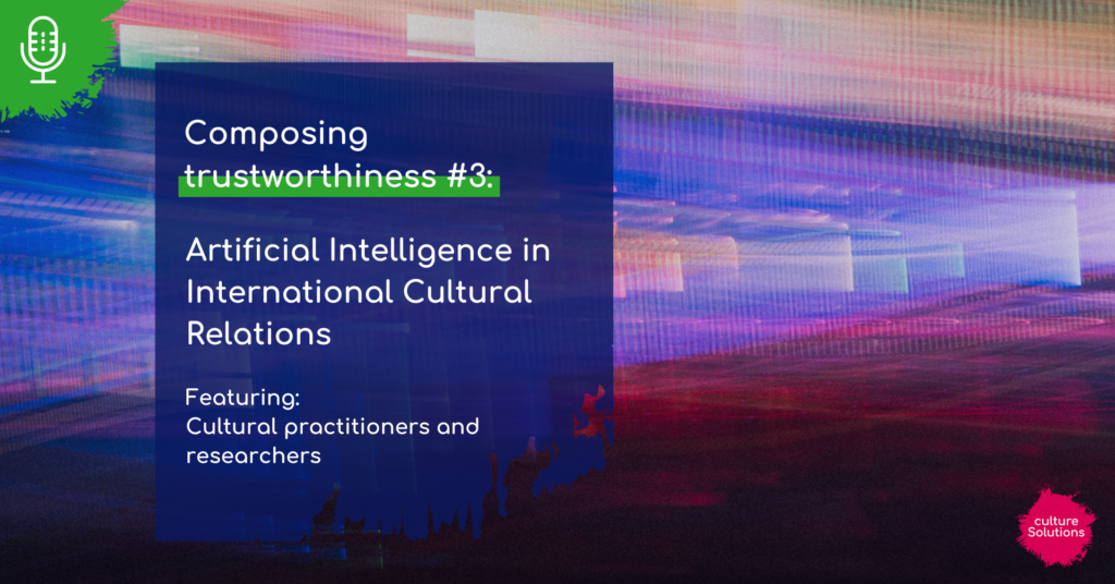 In the third episode of the miniseries entitled Composing trustworthiness, we dive deep into our core topic: the impact of Artificial Intelligence on International Cultural Relations, and the way this disruptive technology drives or impedes relations with partners around the globe.