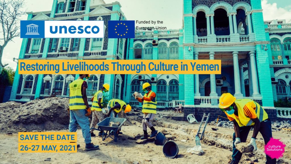 On May 26-27, UNESCO and the European Union organised a virtual conference “Restoring Livelihoods Through Culture in Yemen” facilitated by culture Solutions. Read more about the initiative and access the programme.