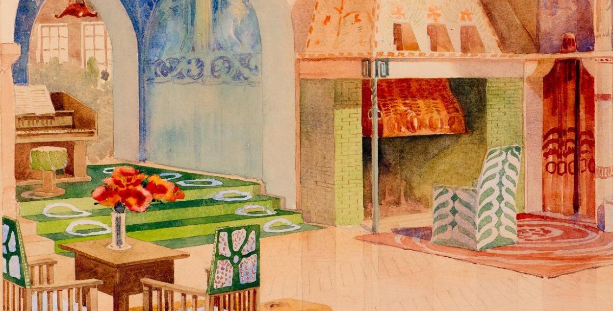 Photo credits: Gesellius, Lindgren & Saarinen. Suur-Merijoen kartano, Viipurin maalaiskunta, hallin perspektiivipiirustus, 1902. Museum of Finnish Architecture. CC BY.